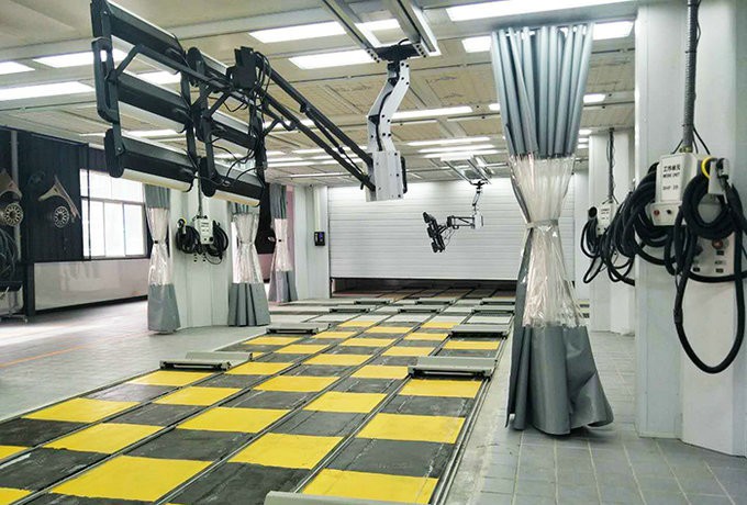 2、流水線工藝形式:大鈑金→小鈑金→局部刮膩子→膩子干燥→清潔→噴底漆→底漆烘干(局部) →中涂 →烘干→清潔→噴面漆→流平→面漆干燥。